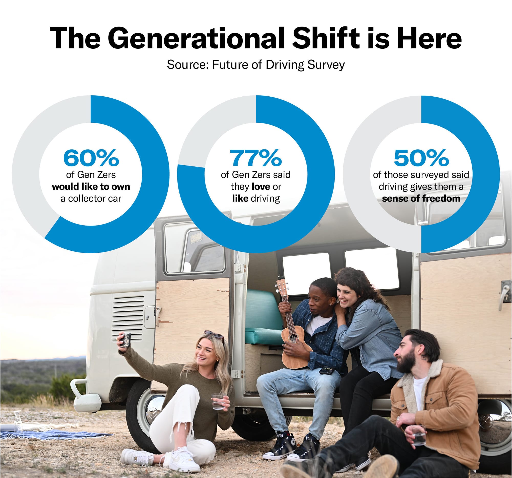 According to Hagerty's 2024 Future of Driving survey, 77% of Gen Z respondents said they either love or like driving, dispelling the idea that younger Americans are walking away from cars. The same survey found that 60% of Gen Z expressed interest in owning a classic car, nearly double the 31% of Baby Boomers who said the same.